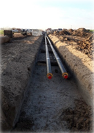 Ondertussen hadden we een plek toegewezen gekregen in deelplan 9 voor het regelstation. Je snapt het al, dan moet er een leiding van deelplan 9 naar deelplan 5 gelegd worden. Dit trace heeft MVOI voor ons aangelegd van november 2020 t/m februari 2021. In dit trace zitten 4 kunstwerken, zinkers om de watergangen te kruisen. Al met al een hele klus.